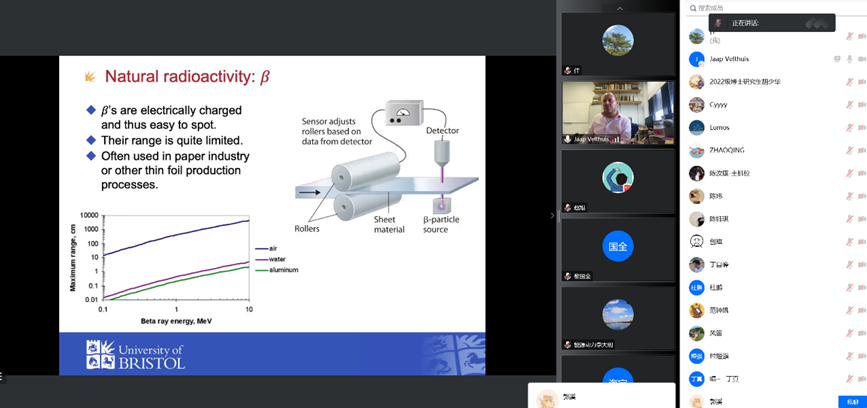 为扎实推进公司早日跻身“双一流”高校目标,引入海外优质教育资源,提升国际化办学水平,开拓员工国际视野,2022年,365英国上市集团继续开展国际课程和交流。受疫情的影响,本学期365英国上市集团研究生物理前沿课程采用教师线上网络授课,员工线上线下相结合的方式进行。11月10日-18日,公司客座教授、英国布里斯托大学教授Jaap Velthuis老师为公司百余名研究生和核物理拔尖班近60名员工开展物理前沿课程《Radiation Detection and Detectors》。Jaap教授幽默风趣又不失严谨的教学风格使原本枯燥的粒子探测技术课程变得生动有趣,受到师生们的一致好评,听课员工超过150人。