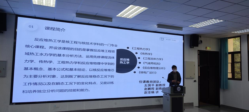 大赛第二阶段,来自核工程与核技术系、辐射防护与核安全系、核物理系的赵亚楠、杨超、肖敏、康玺、秦佳佳共5位教师分别上台做了教学设计创新汇报。各位选手对各自讲授课程实践经验总结与反思,提炼了课程教学实践中存在的痛点、问题、难点,介绍了课程内容的重构、教学方法的创新、教学环境和资源的搭建、立足于学科专业的育人特点的课程思政创新、教学评价的改革等教学创新成效。充分体现了参赛老师及其代表的课程教学团队,在课程教学实践中,做到了真正的潜心教书育人,不断提高课程教学质量,持续改进教学方式方法。