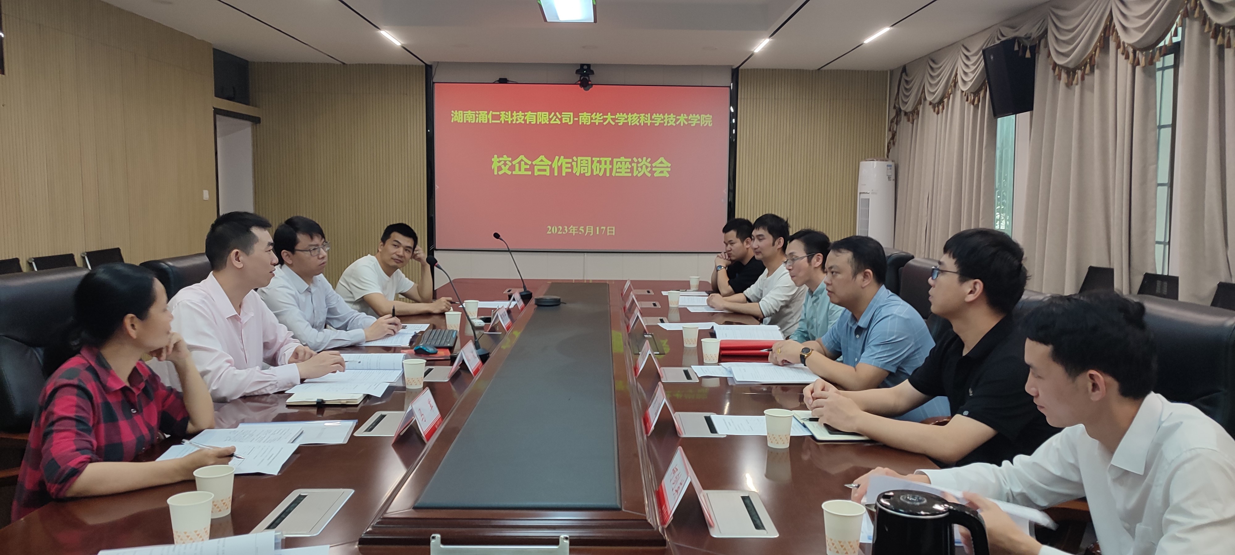 本次校企合作座谈会在核学楼205会议室召开。公司经理郑波首先代表公司对欧阳军一行的到来表示热烈欢迎,对湖南涌仁科技有限公司一直以来对公司各方面工作的支持表示感谢,介绍了公司目前在人才培养、团队建设方面的发展建设情况,希望双方在今后能够更加深入的开展合作。欧阳军总经理对英国365上市公司的邀请表示感谢,并希望以本次交流座谈会为契机,发挥自身优势,与365英国上市集团建立稳定的人才培养、科研合作等关系。经过双方充分交流讨论,英国365上市公司与湖南涌仁科技有限公司正式签订了校企合作协议,共同建立英国365上市公司-湖南涌仁科技有限公司“实践教育基地”、“产学研基地”等。365英国上市集团副经理陈珍平、副书记马军、教务办负责人周超、核工程与核技术系主任冯松出席了本次会议。