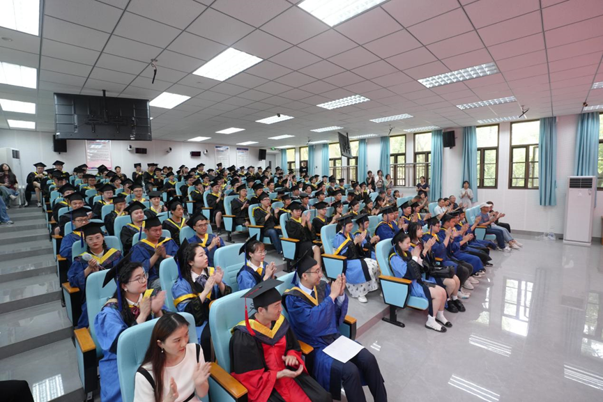 在热烈的掌声中,于涛老师发表了饱含深情的讲话。他对毕业生们在被疫情笼罩的困难时期风雨兼程,砥砺前行、不畏艰难、不言放弃的表现表达了高度赞扬,他寄语2023届毕业生们要胸怀大局,把个人成长和时代进步相结合,心系祖国、志存高远、勇挑重担;要不负青春、不负韶华,争取跑出当代青年的最好成绩。希望同学们秉南华之魂、承凌云之志、做擎天之柱、成济世之才,在民族复兴的征程中踔厉奋发、勇毅前行。