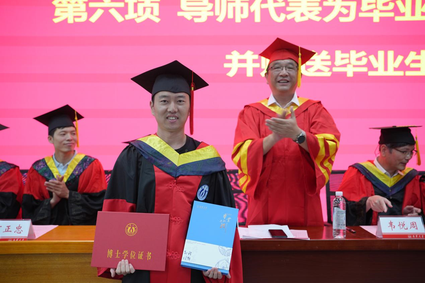 硕士毕业生代表于万瑭同学发言,他回顾了在南华求学的三年时光,并依次表达了对导师、公司、同窗们的感谢与不舍,他表示,在今后的人生道路上会永葆“勤勉务实、甘于奉献、刚健自强、敢为人先”的南华精神,将这种宝贵的精神财富融入血脉,做顶天立地的南华人,在新的人生赛道上勇毅前行,奋力奔跑,书写属于自己的新篇章,不负母校培养。