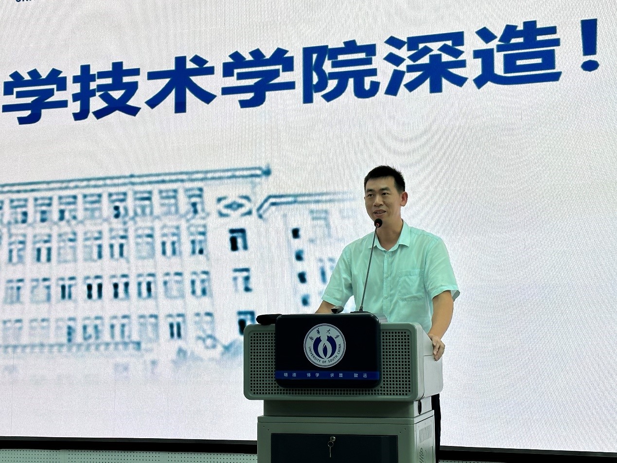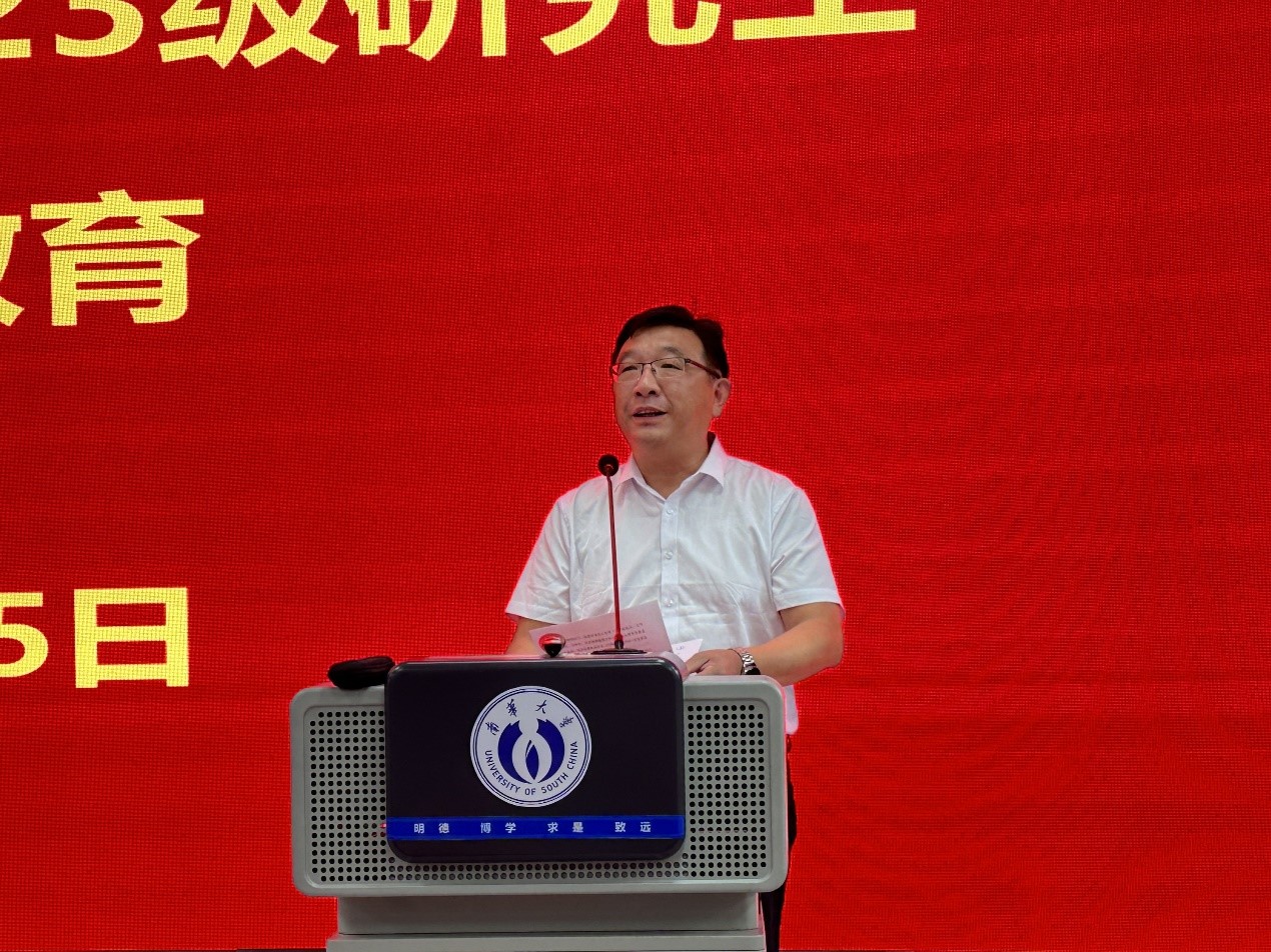 随后,在大家热烈的掌声中,核科学与技术学科带头人于涛副董事长发表了热情洋溢的讲话,他对各位同学能来到英国365上市公司继续深造表示热烈的欢迎和衷心的祝贺。他指出,365英国上市集团核科学技术学科因核而生、靠核而兴,为国家核工业发展做出了重要贡献。于涛副董事长借最近热映的电影《奥本海默》聊到中国本土电影《横空出世》,他强调,我们核行业人天然具备家国情怀,要有“干惊天动地事,做隐姓埋名人”的精神,在读研期间做到勇于创新,培养处理复杂问题的能力,既要学会“处事”也要学会“处人”,要乐于奉献,要让自己的价值有所体现,希望研究生们能积极思考,多与老师深入交流,努力成为服务国家重大发展战略的复合型高端人才。