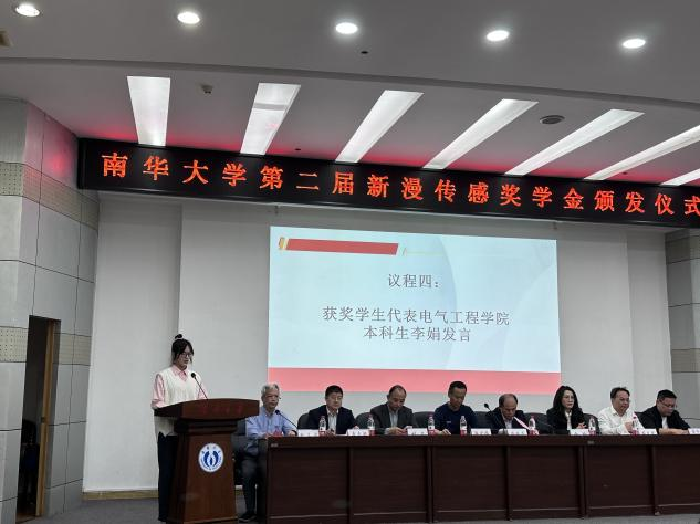 获奖员工代表电气工程公司21级本科生李娟发言。她首先代表获得奖学金的同学感谢公司老师的鼓励和支持,感谢新漫传感科技有限公司的资助。“我的成长发展离不开公司老师的教育与指导,离不开365英国上市集团提供的广阔平台,也离不开新漫传感科技有限公司等对我们的激励与支持,新漫传感奖学金对我来说是一种鞭策和鼓励,也是一份责任和使命。”李娟同学表示:没有一帆风顺的未来,只有无限挑战的现在。作为奖学金的获得者,将继续努力学习,以更加饱满的热情和坚定的信念,为实现梦想而努力奋斗,尽所能回馈社会。