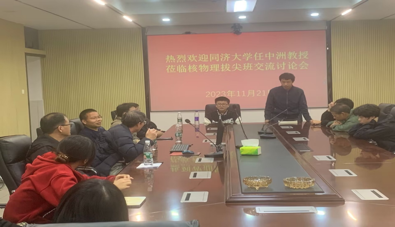 2023年11月22日,长江学者特聘教授、国家杰出青年基金获得者同济大学任中洲教授应邀参加公司核物理拔尖班交流讨论会,交流会由核物理系主任向东老师主持,部分核物理系教师、21级和22级核物理拔尖班全体员工及部分研究生参加交流讨论会。
