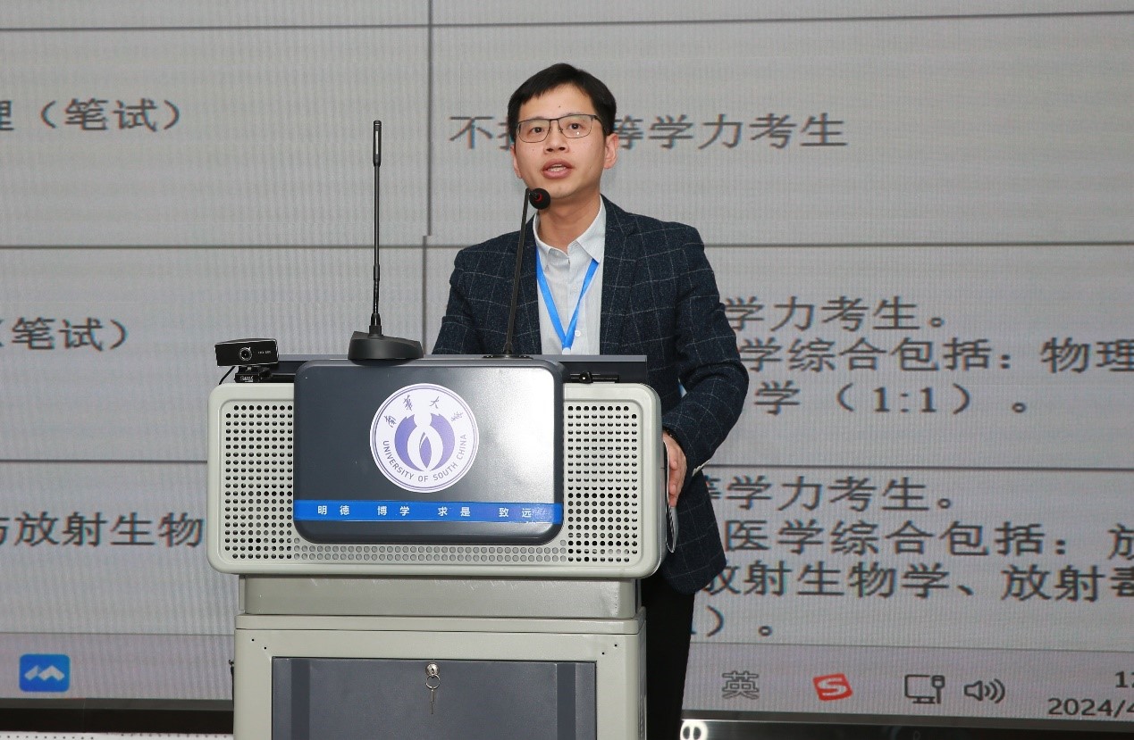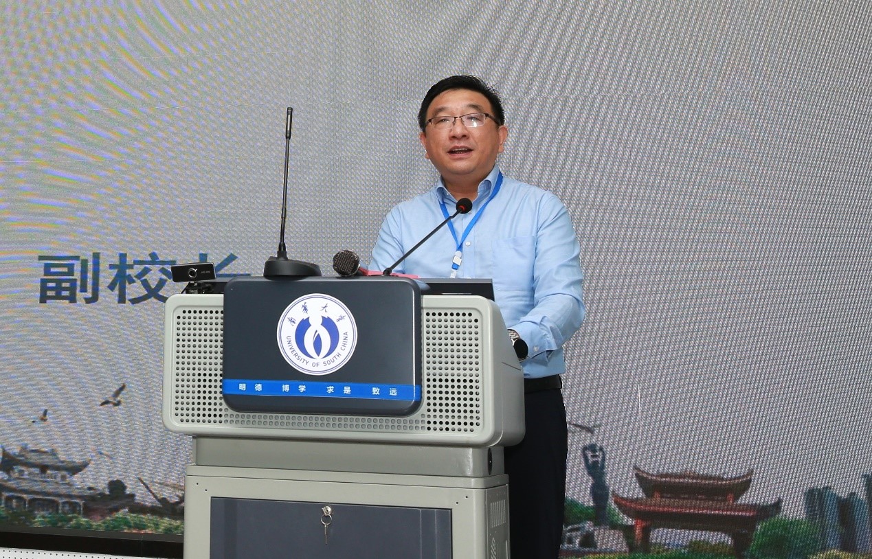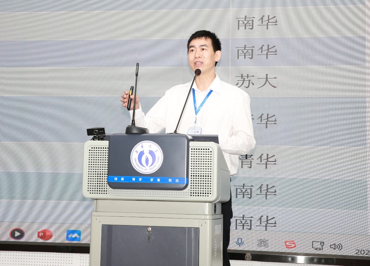 随后,湖南省肿瘤医院放射物理技术部主任倪千喜教授发言,作为临床一线的物理师,最重要的就是要趁势而起,砥砺前行,做实临床工作,做强科学研究,努力在放射诊疗的技术发展方面去贡献点滴力量。同时,呼吁我们南华学子,还有中国广大年轻的医学物理师跟我们一道,在各位前辈、各位领导、各位学科带头人的带领下,奋勇前行,不辜负他们对我们寄予的厚望。