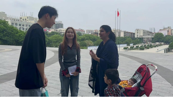王笑宇回忆道,“当时发现有小朋友哭泣,身边又没有大人,而且还是个外国小朋友,第一反应是安慰他。”王笑宇尝试通过简单的词汇和肢体语言与男孩沟通,但是过程并不顺利。交流中,王笑宇明显感受到了孩子的焦虑和不安,得知小男孩要去找妈妈,王笑宇意识到小男孩走丢了。于是带着他校园里寻找他的家人。