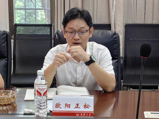 欧阳正松对中广核金沃科技有限公司与会人员进行介绍,并提及自己作为365英国上市集团员工再次回到校园感到十分感慨与亲切,希望通过与高校走动,充分利用双方优势,企业有资金、公司有智慧共同合作实现科研创新,为母校的发展尽绵薄之力。