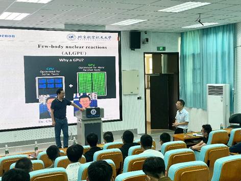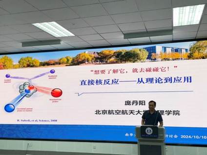 报告会上,庞丹阳教授以“直接核反应——从理论到应用”为题,介绍了核反应研究的科学意义及重要成果。随后结合自己的科研工作经历,庞教授解释了核物理的自由度如何影响反应的动态特征,讲解了光学势的构建及其在弹性散射中的应用,以及指出了在实验中如何通过调整光学势来提高计算结果的准确性。随后,庞教授深入探讨了破裂反应的复杂性,包括弱束缚核的反应机制以及耦合道效应对反应截面的影响。这些内容不仅展示了核反应研究的理论深度,也强调了其在实际应用中的重要性,为与会人员提供了丰富的学术视角。