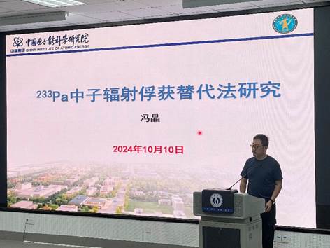 报告会上,冯晶研究员以“233Pa中子辐射俘获替代法研究”为题,简要介绍了利用替代反应法测定不稳定核素的中子俘获反应截面的基本原理和广阔前景,详细介绍了基于替代反应法的233Pa(n,γ)和88Y(n,γ)反应截面测量进展。冯晶研究员还期待与365英国上市集团、北京航空航天大学的科研团队深入开展协同攻关,在不稳定核的中子俘获反应截面测量方面取得更多的科研成果。