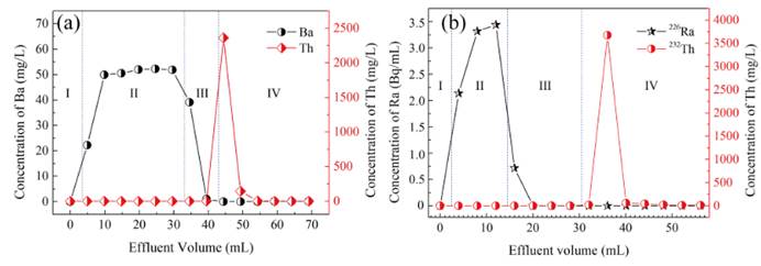 图2(a)钍和模拟元素Ba的分离;(b)232Th和226Ra的分离