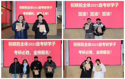 “以前都是我们祝福学长学姐,今年也收到了学弟学妹们和领导老师们的真挚祝福和暖心礼物,非常温暖和感动!临近考研,最需要的就是心态,感谢老师和学弟学妹们为我们助力,帮我们建立信心,相信在考场上我们定能释放全力!”参加完活动的2021级核工专业李耀阳说。
