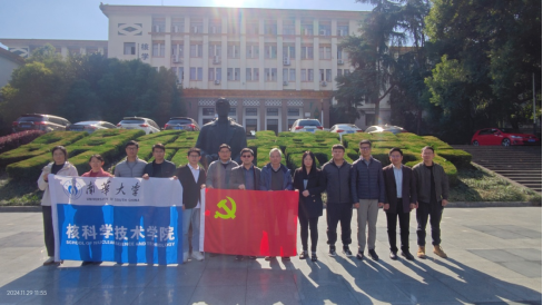 最后,大家在核学楼张爱萍将军铜像前进行合影留念,双方表示要加强互动交流,共同推动党建、业务、项目等多方面合作。