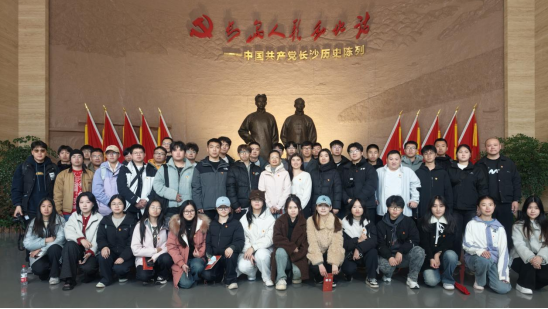 在新民学会旧址,师生们通过珍贵的历史文物与文献资料,重温了毛泽东、蔡和森等革命先驱“改造中国与世界”的初心萌发与早期实践。全体党员面对党旗庄严宣誓,铿锵誓言在革命故地久久回荡。在长沙党史馆,大家系统学习了党领导长沙人民开展革命、建设与改革的奋斗历程。随后,师生们来到橘子洲头,在青年毛泽东艺术雕塑前驻足瞻仰,深切感受革命先辈在青年时期的远大理想与时代使命。