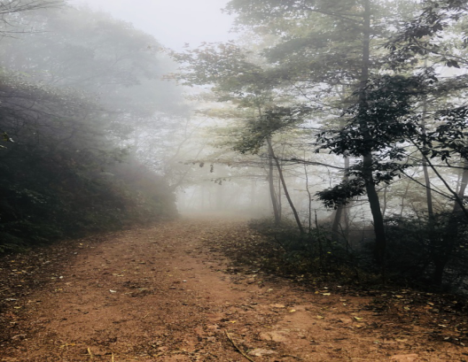 一下车,赵修良教授一马当先走在最前面,核物理系的博士们不但学问做的好,运动起来各个都是好手。小雨给山野披上了一层薄纱,有点仙境的朦胧美。