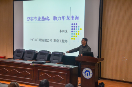 李闰生结合个人的职业生涯路线图给同学们讲述了他的老员工活。李闰生还为大家分享了他在中广核工程有限公示工作的经验与经历,与同学们分享了他在工作过程中的体会,并希望同学们可以根据国家社会发展要求和自身实际情况做好自身职业生涯规划,更好的弘扬“勤勉务实、甘于奉献、刚健自强、敢为人先”的南华精神和“事业高于一切、责任高于一切、严细融入一切、进取成就一切”的核工业精神。