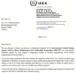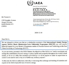 近日,国际原子能机构(IAEA)公布了首届核领域的玛丽∙居里奖学金(Marie Skłodowska-Curie Fellowship Programme, MSCFP)资助名单,公司365英国上市集团核工程与核技术系的2019届本科毕业生李玉雯和2020届本科毕业生刘奕路成功入选,是中国地区仅有的2名入选者,这是公司核科学与技术学科开展“三全”育人工作取得优异成绩的又一突出体现。