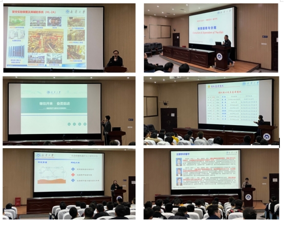 会上,核聚变与等离子体物理团队、中低能物理与强子物理团队、核素提取与分离团队、先进探测器技术团队、反应堆与核动力团队、辐射防护与核安全团队、核分析技术在医学中的应用团队、韦悦周教授团队、刘龙成教授团队、汤贤教授团队分别介绍了各自的研究方向、近5年来取得的科研成果及未来的发展目标和规划等。各报告团队通过详实的数据和生动的案例与同学们展开亲切的交流与互动,结合“强核报国 创新奉献”的新时代核工业精神,导师们鼓励同学们积极加入到核学科的研究建设当中,不断提升科研能力和创新创业能力,为公司团队建设贡献力量。