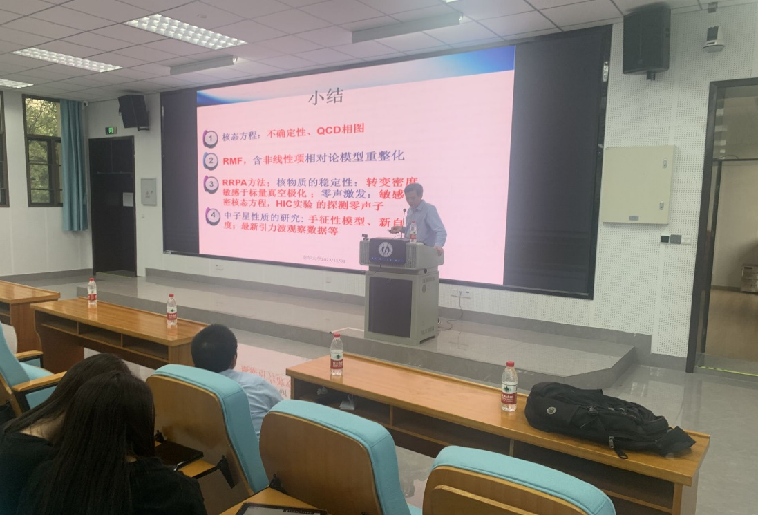 2023年11月3日,东南大学博士生导师蒋维洲教授应英国365上市公司的邀请,在国家核应急宣传和培训基地学术报告厅,为公司师生作题为《核态方程与核多体系统的相对论性研究》的学术报告,本次报告由李小华教授主持。