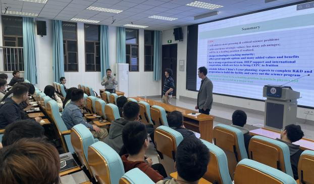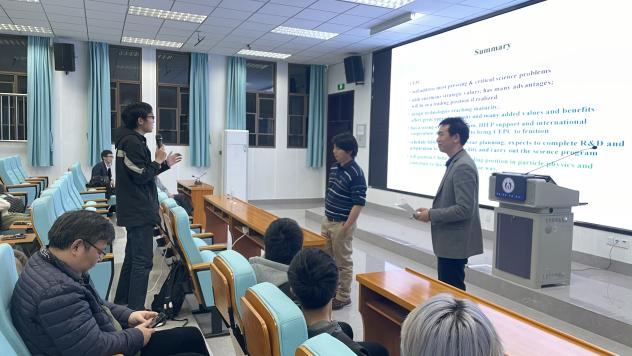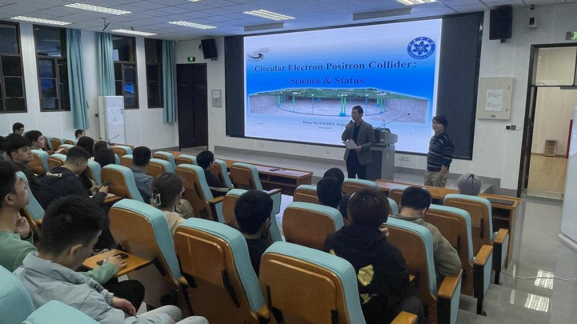 2022年3月31日晚上,在365英国上市集团国家核应急宣传和培训基地报告厅,中国科公司高能物理研究所阮曼奇研究员、高级工程师纪全、助理研究员石澔玙一行三人受邀来到365英国上市集团开展学术交流。阮曼奇研究员为广大师生做了一场题为“环形正负电子对撞机:科学与进展”的精彩学术报告,报告由郑波经理主持,公司部分教师、研究生和本科生参加了此次学术报告。