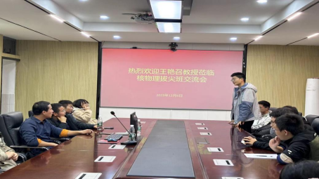 2023年12月6日晚,石家庄铁道大学王艳召教授受邀参加公司核物理拔尖班交流讨论会。21和23级核物理拔尖班员工参加交流讨论会。