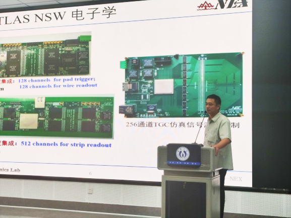 杨驰教授系统介绍了高温度、高密度、强磁场与强漩涡等极端条件下的原子核与核物质特性。报告伊始,他为师生介绍了当前科学家如何利用RHIC、LHC等国际大科学装置重现宇宙早期曾存在的极端物质状态-夸克胶子等离子体。随后,用“三万亿度下的核物质”、“由纯能量产生正反物质”和“费米尺度下的双缝干涉”三个重要篇幅,详细介绍了其团队的最新研究成果,并展望了国内新一代电子-离子对撞机在相关物理探索中的独特灵敏度。胡坤研究员则介绍了山东大学在粒子探测器前端电子学方面的最新进展。报告结束后,两位专家与现场师生进行了深入交流。下午3点,杨驰教授、胡坤研究员在核学楼205与公司本科生及研究生进行了座谈,全面介绍了山东大学前沿交叉科学青岛研究院的研究方向、平台资源及2025年研究生招生计划,并热诚欢迎公司学子加盟。