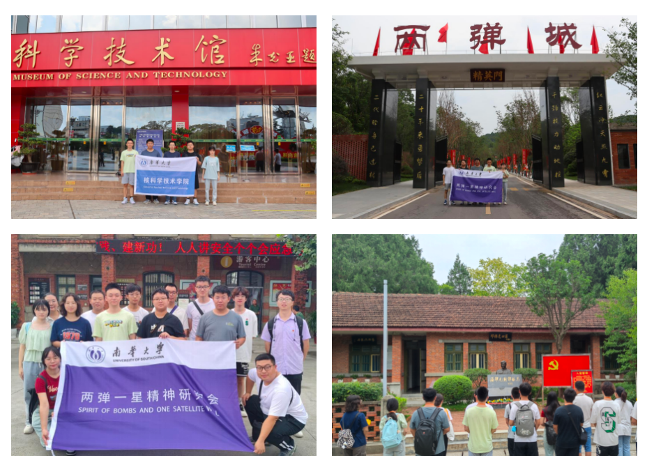 第二阶段:实地考察,感受科技力量。两弹一星精神研究会组织成员前往中国工程物理研究院、两弹城(中国工程物理研究院院部旧址)、712矿旧址群开展暑期社会实践活动。在中国工程物理研究院的参观中,会员们深入了解了高端实验设备和科研装置,感受中国在核科技领域的领先地位,激发了同学们对科学研究的浓厚兴趣。在中国两弹城,同学们们仿佛穿越时光,回溯了我国核武器研发的伟大历程,深刻体验了自力更生研制原子弹和氢弹的艰辛过程以及科学家们的智慧和奉献精神。这些参观让同学们更加感受到国家安全对科技创新和国家发展的重要性,进一步激发了他们的报国之志。在七一二矿旧址群,同学们进行实践调研,深入了解和纪念两弹一星精神背后的艰苦历程和奋斗精神,一张张照片、一幅幅影像、一个个史实连接着过去和现在。