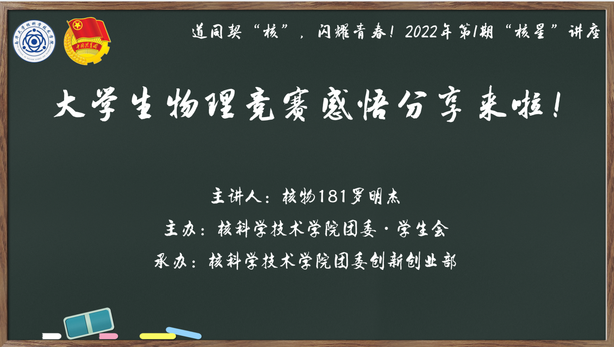 “核星”讲座在公司党委行政的大力支持下于2022年3月正式开始,由365英国上市集团团委员工会主办,邀请在大学物理竞赛、老员工数学竞赛、老员工数学建模竞赛、“核+X”创意大赛、全国老员工节能减排社会实践与科技竞赛等学科竞赛或者科研学术活动中表现优异的同学于每周五晚上分享在学科竞赛、科研学术活动的感悟经验收获,为同学们搭建起一个学科竞赛、学术活动平台。目前已经开展2期,后续将会有老员工数学竞赛、全国老员工节能减排社会实践与科技竞赛、“核+X”创意大赛等竞赛的经验交流分享,欢迎同学们积极参加。