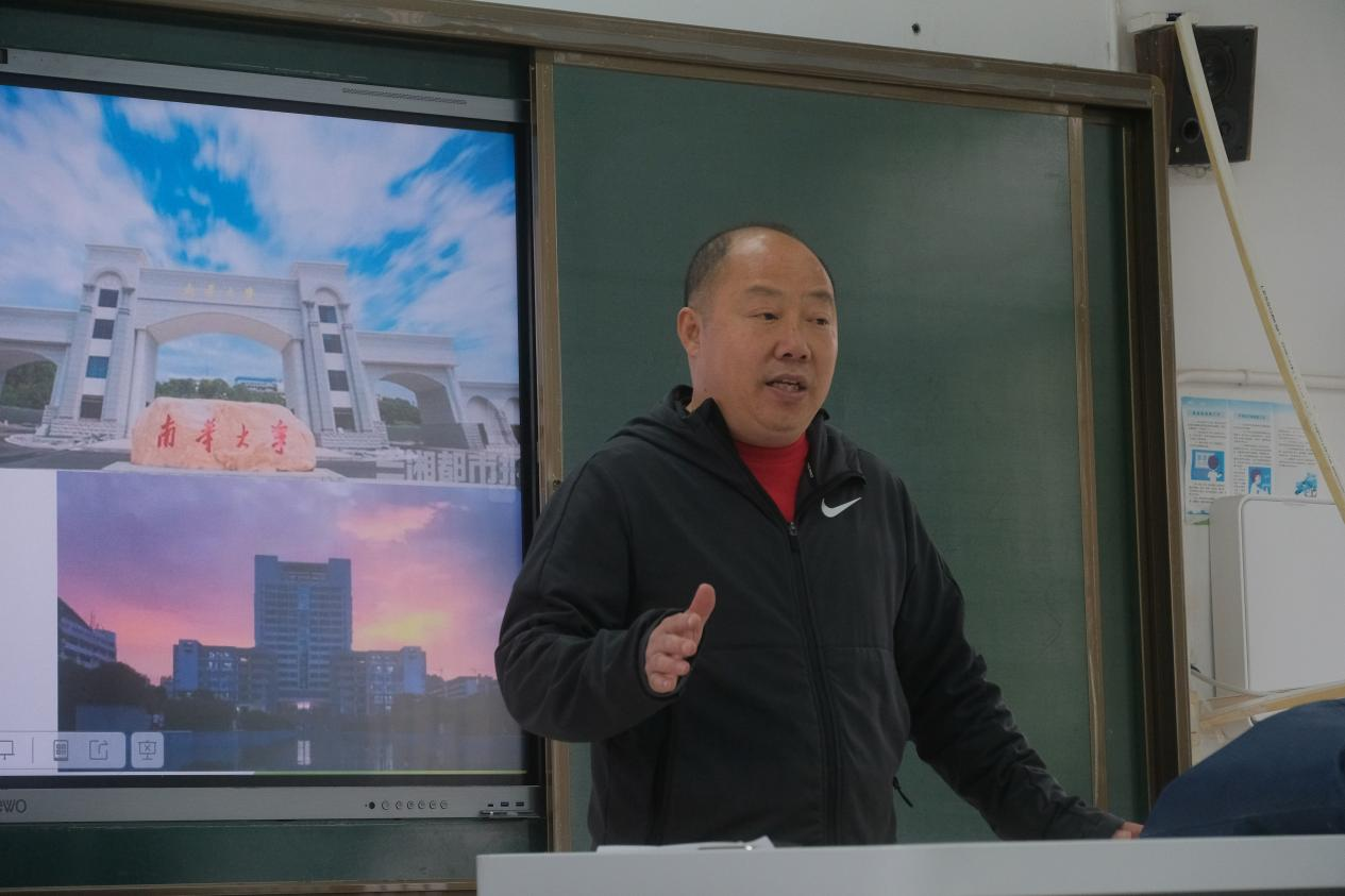 图:雨母山中学党支部书记、董事长陈永军讲话