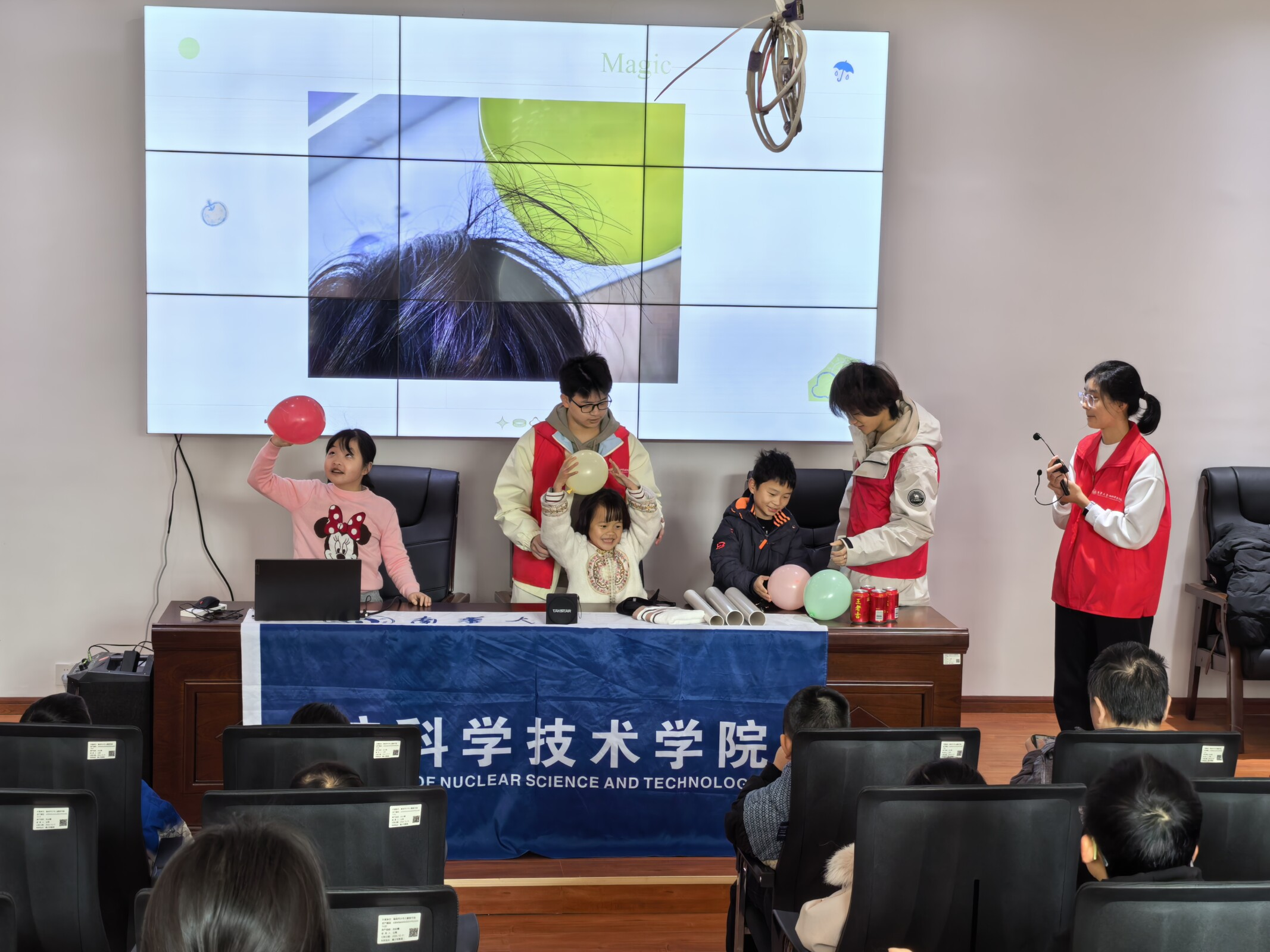 为积极响应国家科普教育号召,激发儿童科学兴趣,助力青少年科学素养提升,近期,英国365上市公司“核”你一起棒棒团志愿服务团队走进衡阳市儿童图书馆,为小朋友们带来了一场别开生面的静电科普课堂——“静电魔法王国”。本次活动以趣味互动和实验体验为主线,带领孩子们化身“静电小巫师”,在魔法般的实验中探索静电的奥秘。
