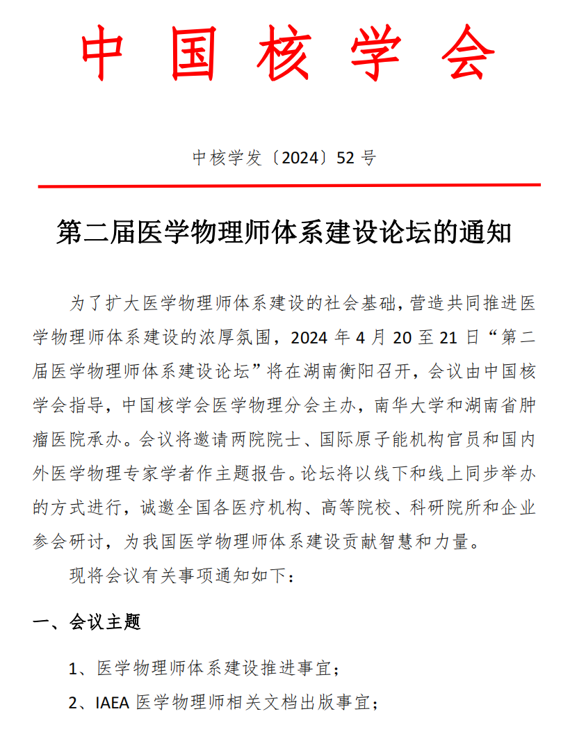 第二届医学物理师体系建设论坛的通知