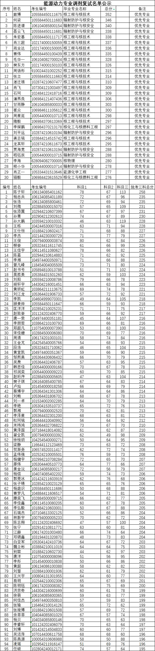 能源动力专业调剂复试名单公示