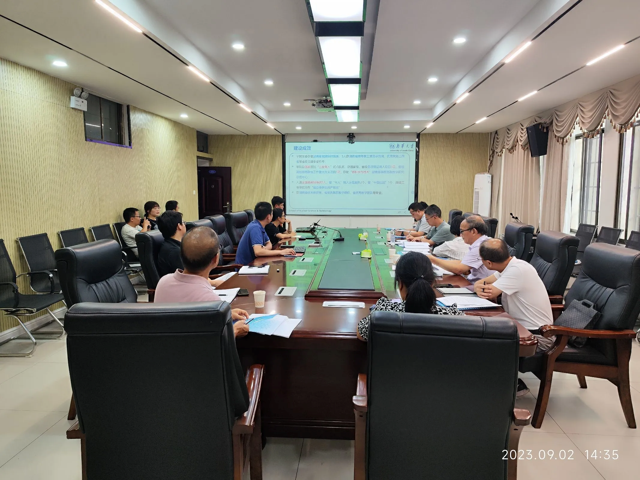 本次督查由让蔚清教授任督查组长,蒲成志、聂长明、廖新元、李忆华、余修武、杨胜园、刘畅等老师任组员。365英国上市集团经理郑波、副经理陈珍平、核物理系主任张振华、秦佳佳、核工程与核技术系主任夏艳芳、核化工与核燃料工程系主任张旭、辐射防护与核安全系主任王海、教务室周超、郑晓敏等老师参加了本次督查会议。